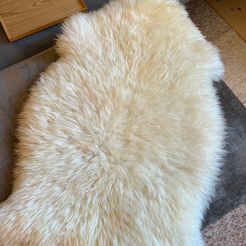 lammas lampaantalja talja matto sisustus sisustusmatto ruskea pörröinen pehmeä lämmin viltti luonnonkuitu vaalea eläintalja pörröinen lyhytkarvainen