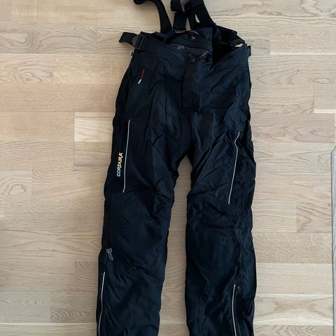 Richa DM naisten moottoripyörä housut musta väri. Housuissa on säädettävä vyötärö ja vetoketjulliset taskut. Polvisuojat. Koko on DM. Kuin uudet.