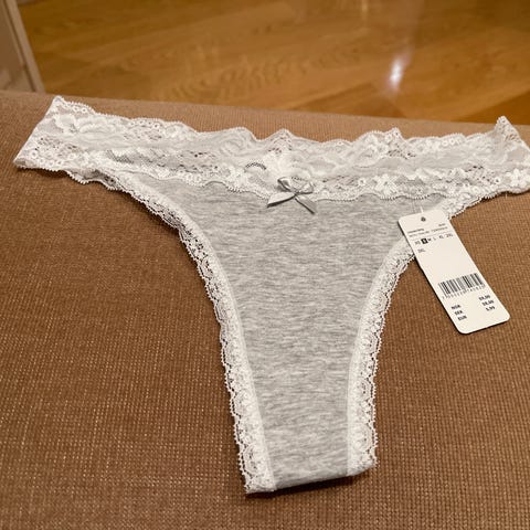 Uudet alushousut, joista laput leikattu irti. Käyttämättömät.