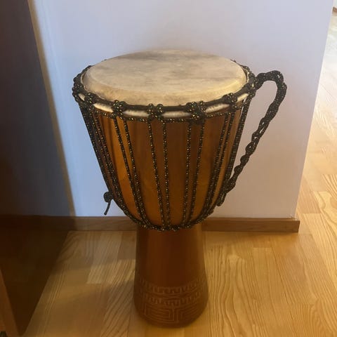Todella hyvä ja syväsointinen djembe rumpu, punotulla kantonarulla. Mielellään nouto.