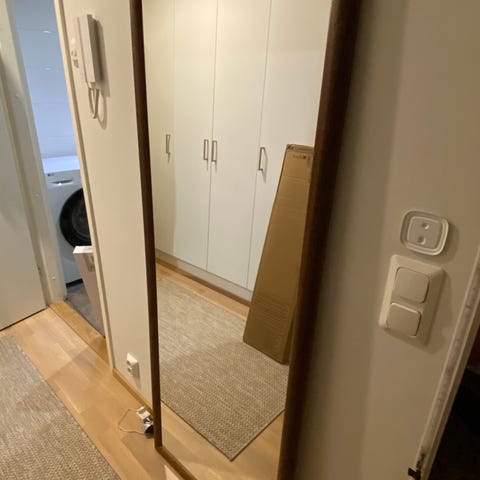 Pieni koriste peili. Hyvässä kunnossa, takana on myös tarra kiinnitykselle mahdollisuus.
