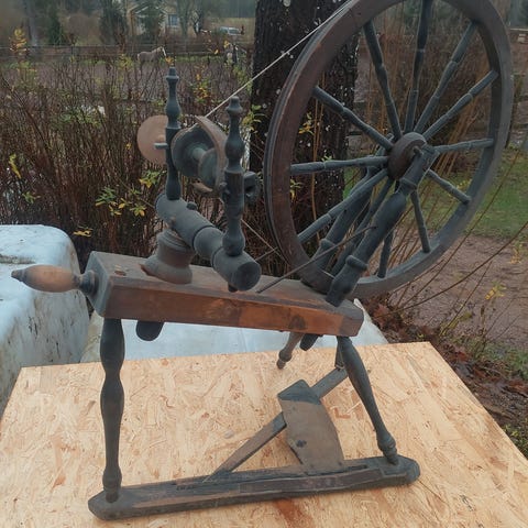 Myydään vanha puinen rukki. Vintage-esine, joka sopii erinomaisesti sisustukseen, somisteeksi tai kunnostusprojektiksi.