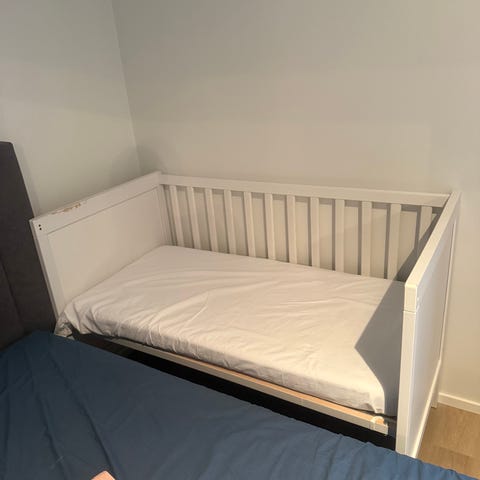 Annetaan ihana vaaleanpunasävyinen pinnasängyn reunapehmuste. Toiselta puolelta pilkallinen, toiselta puolelta pientä ruudulla. Standardipituinen, korkeus n. 34cm. Hyvä käytetty kunto, ainoa moite minkä takia annetaankin on että useampi naru millä kiinnitetään pinnasängyn pinnoihin on irronnut ja mennyt hukkaan ajan saatossa. Käytetty niillä mitä jäljellä (pysynyt ok kun suht korkea ja laitettu alaosasta patjan ja pinnojen väliin), mutta joku näppärämpi ompelee lisänarut :) Nouto Espoon Mankkaa.
