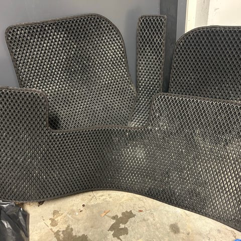 Mustat auton kumimatot, jotka on suunniteltu suojaamaan auton lattiaa lialta ja kosteudelta. Matot ovat muotoiltuja istumaan auton lattian muotoihin ja sisältävät erilaisia kuviointeja lian keräämiseksi.