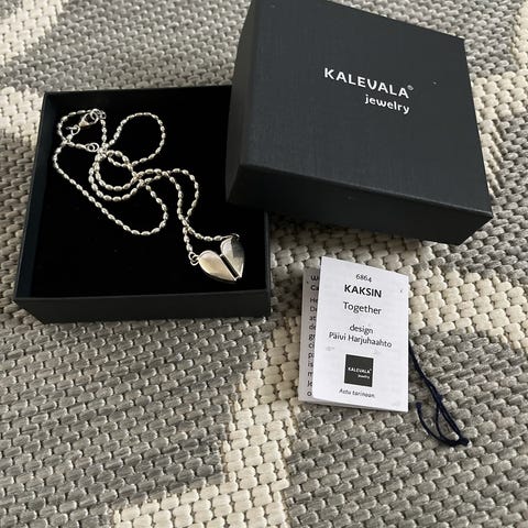 Käyttämättömäksi jäänyt Kalevalan Kaksin kaulakoru. Kerran ollut kaulassa, moitteeton kunto.