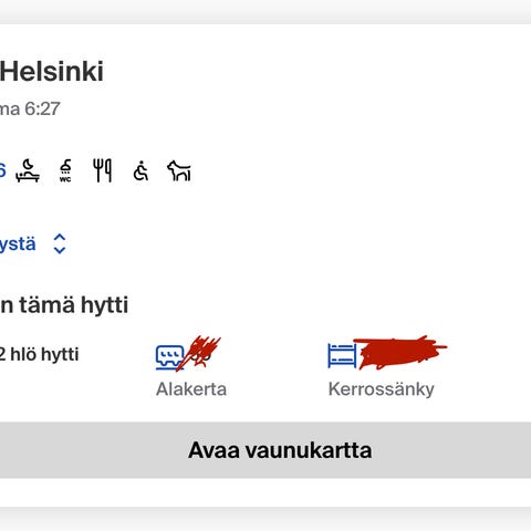 Rovaniemi - Helsinki 11.1 17:52 - 06:27 2hlö makuuhytti