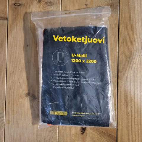 Myydään muovinen remonttisuoja oveen. Teipattava. Kerran käytetty.