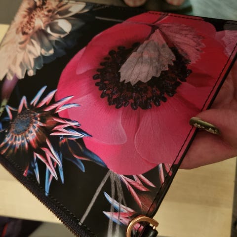 Ted Baker ja Guess kirjekuorilaukut. Bakerissa irroitettava rannehihna, Guess -laukussa ei kantohihnaa mukana. Joitain käytönjälkiä näkyvissä, yleisilmeeltään suht siistikuntoiset.