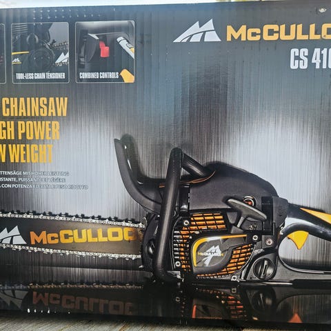 Uusi, avaamaton , Tämä moottorisaha on samanlainen kuin Husqvarna 435. Valmistettu Husqvarna Ruotsissa. 2 vuoden takuu. McCulloch CS 410 -moottorisahan varusteluun kuuluvat Soft Start -toiminto, polttoainepumppu sekä yhdistetty rikastin-/pysäytyspainike. Terälevyn pituus on 33 cm. Ketju on helppo huoltaa pikakiristyksen ansiosta, ja pikalukittava sylinterinkotelo mahdollistaa helpon suodattimen ja sytytystulpan puhdistuksen ja vaihdon. Takakahvaan on kiinnitetty kätevä, helposti mukana kulkeva yhdistelmätyökalu.