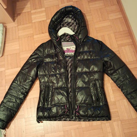 Myydään naisten kevyt toppatakki. Hupullinen. Vetoketjut taskuissa. Pieni reikä tullut huppuun joka liimattu. Näkyy kuvassa