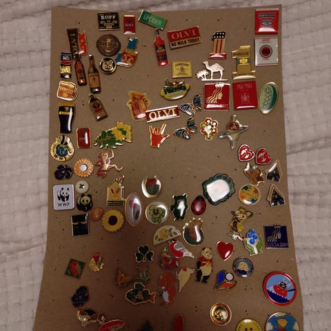 Pinssejä 2€/kpl. Mieluiten useampia kerralla.