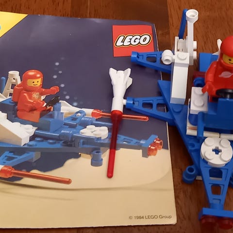 Kaikki osat tallessa. Minifiguuri erinomaisessa kunnossa, ei halkeamia tai suurempia käytönjälkiä.