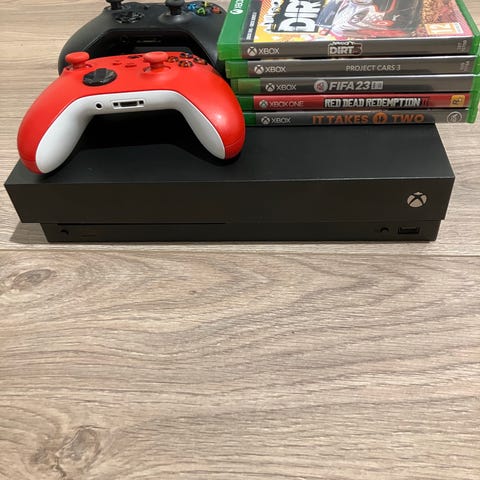 Myynnissä Xbox One X, kaksi ohjainta, ja muutamat pelit. Ohjaimista irronnut vasemman tatin pehmuste, sekä toisessa pientä "stick driftiä". Pystyy silti käyttämään. Toinen toimii moitteettomasti. Näitä lukuunottamatta kaikki on loistavassa kunnossa. Mukaan tulee edellämainittujen lisäksi virta- ja HDMI-kaapeli.