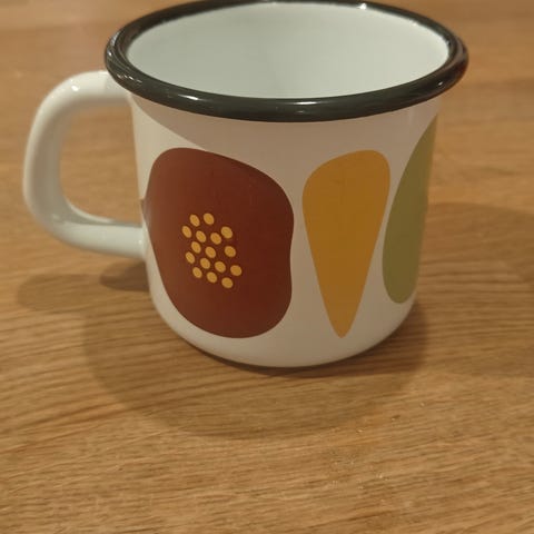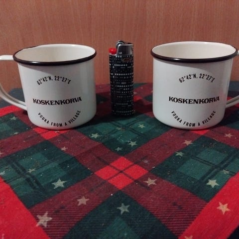 Kaksi kuvanmukaista emalimukia. Mukit on muuten hyvässä kunnossa, mutta vähäisestä käytöstä huolimatta reunoissa on muutamia nirhaumia. Olen huomioinut tämän hinnassa ja kuntoluokituksessa. Myyn mukit yhteishintaan 2 kpl 10€.