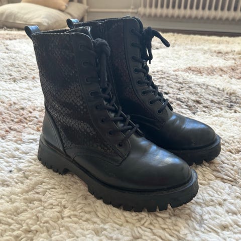 Hyväkuntoiset, nahkaiset Tamariksen maiharit. Nauhat + vetoketjut sivussa. Reilu koko.