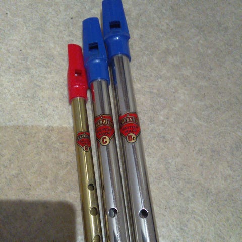 Hyvässä kunnossa oleva Clarke tinapilli. Pituus n. 32,5 cm.