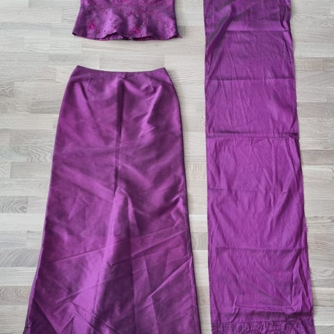 Ariella London violetti iltapuku. Lähes käyttämätön. Rinnanympärys 86–92 cm (nyörityksen vuoksi). Kainalo-helma 123 cm. Kooltaan noin L, vaikka ei ole kokolappua.