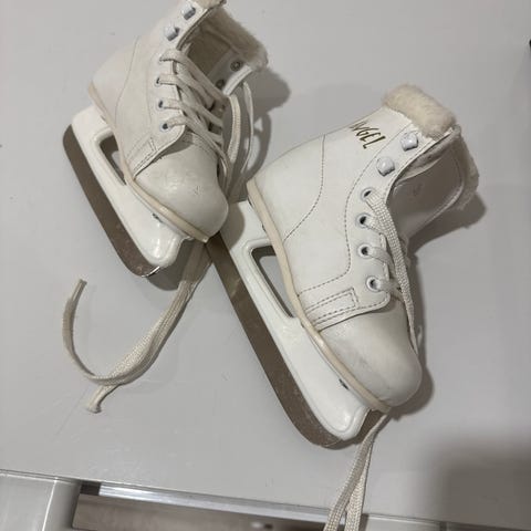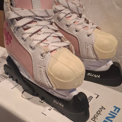 Lasten luistimet teräsuojilla. Terät juuri teroitettu. Koko 25.