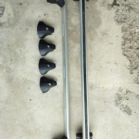 Muutaman kerran käytössä olleet Skodan alkuperäiset kattotelineet. Sopii Skoda Superb Sedan 2015-2023 malleihin.