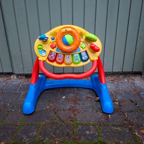 Hyväkuntoinen "Rollaattori", jossa jarrut ja musiikki/ääni painikkeita.
