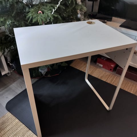 Valkoinen Ikean Bekant työpöytä. Korkeus säädettävissä. Hyvässä siistissä kunnossa. Nyt jalat purettuna.