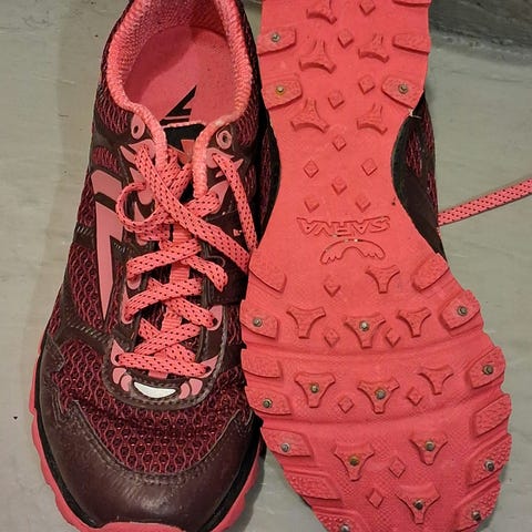 Ostan toridiilillä naisten tai unisex nastajuoksukengät, sisämitta 24,5 cm eli n. 39 valmistajasta riippuen.