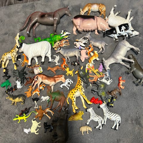 Käärmeitä, rapuja, hämähäkki ja lintu/lepakko.