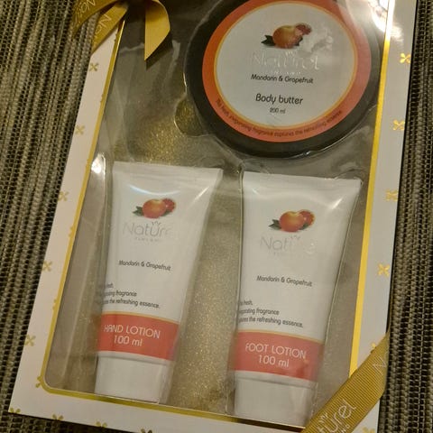 Myydään uusi ja avaamaton Naturel Mandarin lahjapakkaus, joka sisältää suihkugeelin 270 ml ja vartalovoiteen 270 ml. Molemmat tuotteet käyttämättömiä.
