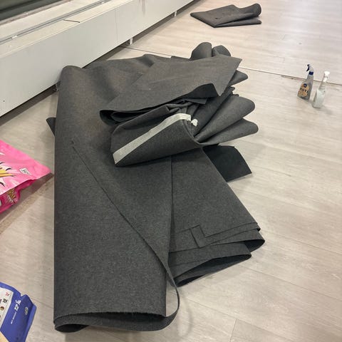 Annetaan Elloksen puuvillamatto. Mattoa ei ole pesty enkä ole varma irtoako kuvassa oleva tahra. Joistain kohin matossa haalistumista.