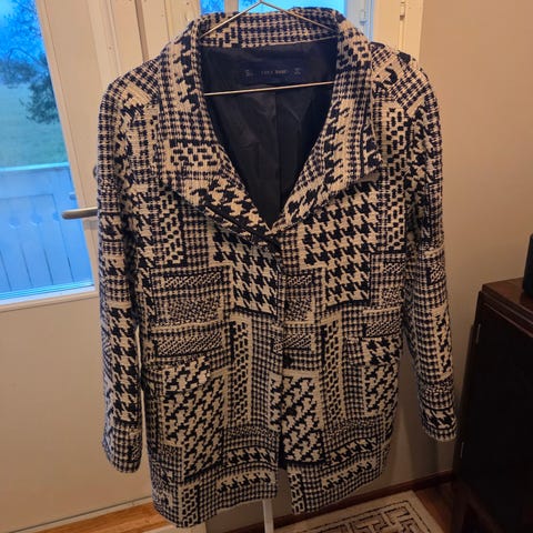 Koossa L mutta mahtuu isommallekin koska takin tyyli on todella overside mallinen