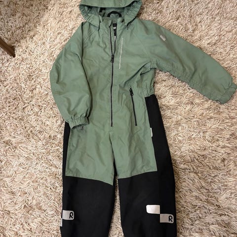 Reiman kuorihaalari kokoa 116cm. Haalarissa ei ole lämmintä vuorta. Kunto hyvä. Molemmat jalkalenkit löytyvät mutta nämä eriparia, sillä toinen on uusittu.