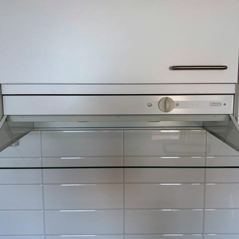 Ulosvedettävä, kaapistoon integroitava liesikupu. Liukuosan syvyys on säädettävissä.