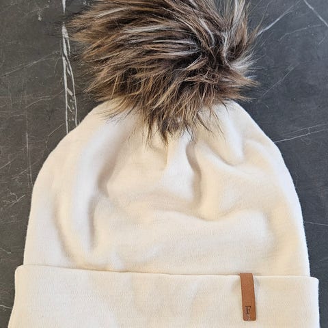 Pipon kruunaa upea tupsu. Karva on tekoturkista ja sisällä on kevyttä vanua, joka pitää tupsun upean muhkeana tekemättä siitä kuitenkaan liian painavaa! Tupsu on pipossa kiinni tukevalla nepparilla, joten se on helppo irroittaa esimerkiksi hupun käytön tai pesun ajaksi.
