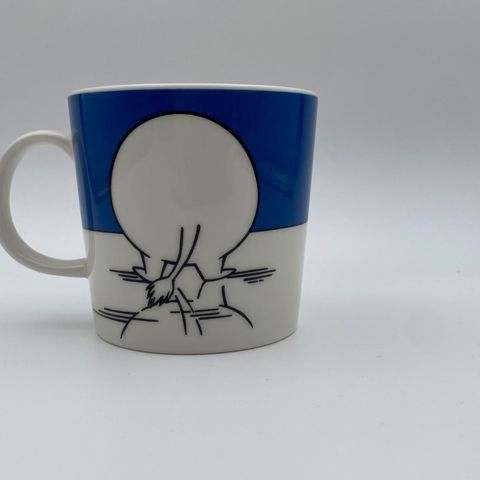 Metallinhohtoinen Muurlan konepesun kestävä muimipeikko-aiheinen emalimuki. Vetoisuus 3,7 dl. Tarrat ja tuoteläpyskä mukana.