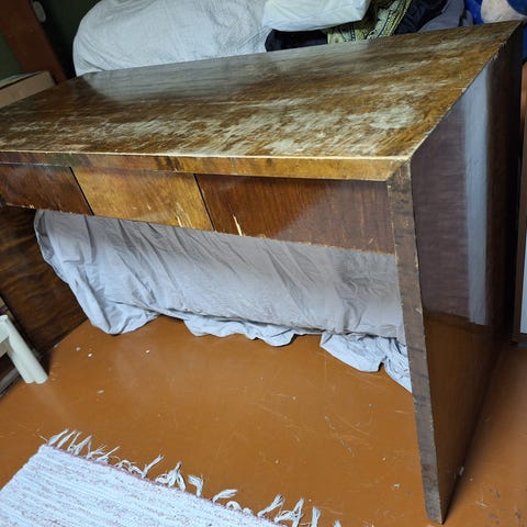 Vaaleat keittiökaapistot ovat ehjät ja toimivat. Ovet eivät pysy kiinni, mutta tämä johtunee vuodenajan vaihtelujen vaikutuksesta (täyspuu kutistuu/laajenee).