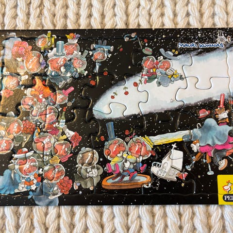 Myydään hyväkuntoinen ja siisti Mauri Kunnaksen palapelikirja, jossa kaikki palat tallella. Jäänyt meillä palapeli paljouden takia hyllyyn.