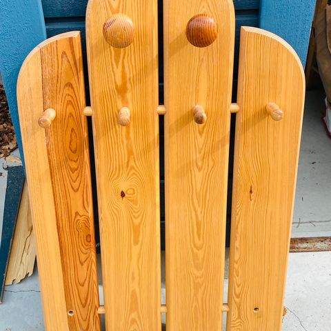 Muovinen "retro"naulakko. Ehjä, puhdas, erittäin siisti. Pituus 60 cm, leveys 5 cm. Nupin halkaisija 6,5 cm.