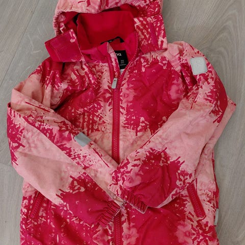 Reima sevetti 128 vedenpitävä kevyttoppahaalari. Peppu ok. Polvet hieman pehmentyneet. Muutama viilto naarmu haalarissa. Ominaisuudet tallessa.