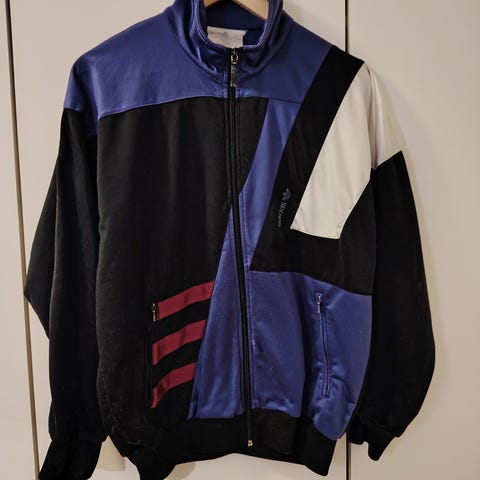 vintage Adidaksen valmistama kevyt vuorellinen verkkatakki , jossa rinnassa brodeerattuna Hotelli Kauhajoen Krouvin tunnus. Vetoketju, sivutaskut vetoketjuilla. Vetoketjut ehjät ja toimivat. Koko:L, ks.kuva2. Hinta 20e. Nouto