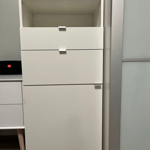 Kaapin päälle limattu levy, jonka takia syvyys on eri kuin Ikean sivuilla. Jotain pieniä jälkiä voi löytyä, mutta ei mitään silmään pistäviä. Muuten tosi hyvässä kunnossa.