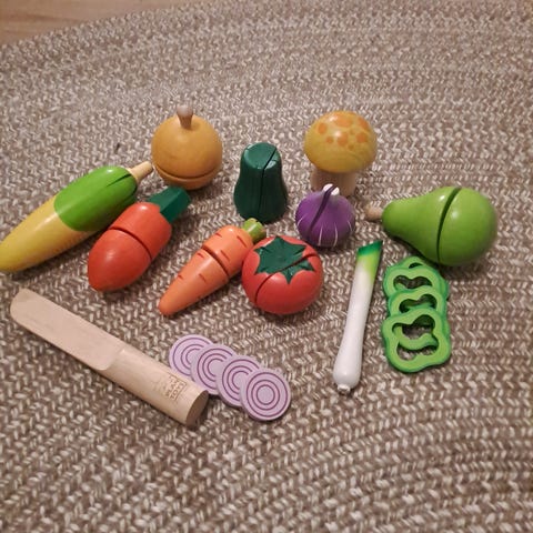 Hape-merkkinen puiset välineet pizza-paistoleikkeihin.