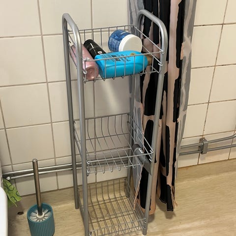 säilytyskaappi, metallista ja muovista. Kaapissa on kolme vetolaatikkoa, joissa hyvin säilytystilaa. Pyörät helpottavat siirtämistä. Sopii esimerkiksi kylpyhuoneeseen tai toimistokäyttöön.