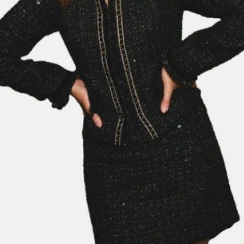 Self-Portrait housupuku mustassa värissä, koko XL. Materiaalina polyesteri. Naisten vaate, jossa pitkät lahkeet ja koristeelliset hihat höyhenyksityiskohdilla. Laput irotettu, mutta ei käytetty. Ostettu Stockmanilta