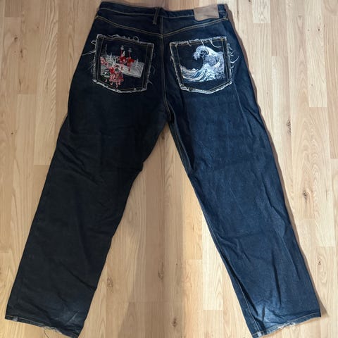 Alkuperäinen koko on 28W 30pituus koko (30 koko ei ole nykyinen koko, koska näitä housuja on lyhennetty). Kysy mitoista yksityisviestillä.