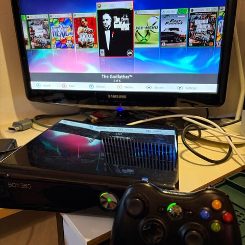 Konsoli , ohjain, virtalähde ja kuvan pelit