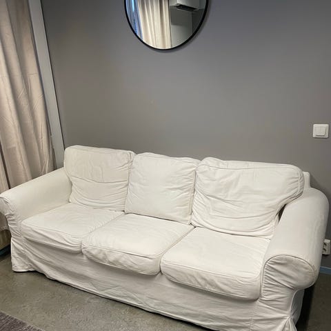 Myydään hyväkuntoinen valkea sohva. Irrotettavat päälliset. Pesty puhtaat