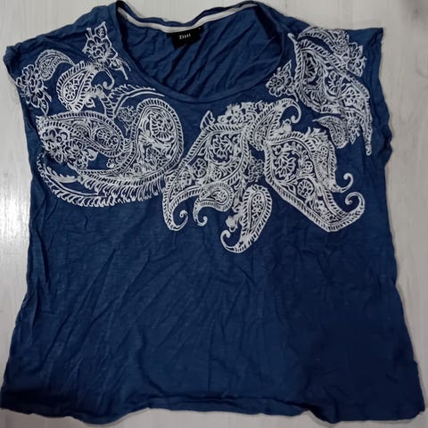 Hyväkuntoinen tummanvihreä (normaalivalaistuksessa väri selkeämmin näkyvissä kuin etupuolen kuvassa) Zizzin kukkakuviollinen T-paita. Naisten S-koko.