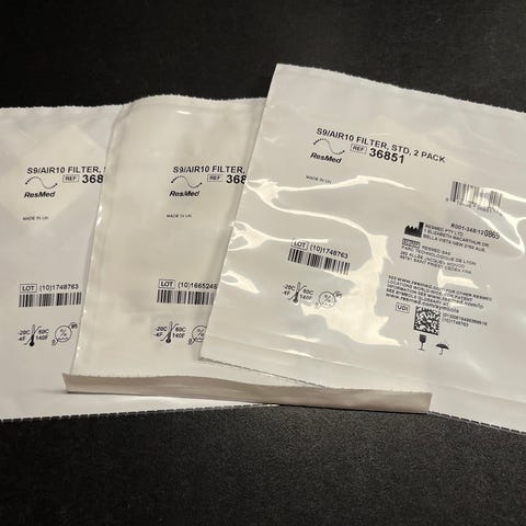 Uudet, täysin käyttämättömät ja alkuperäiset 3 kpl ResMed AirFit P10 CPAP Sieraintyynyt AirFit P10 sierainmaskiin.