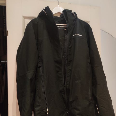 Miesten Everest-untuvatakki: XL, kuin uusi, pesty, paljon taskuja, huppu, irrotettava karvareunus huppuun, hiharesorit, kosteuttahylkivä materiaali, väri musta, 50 e, saa sovittaa Helsingin Etelä-Haagassa, postitus ostajan kustantamana