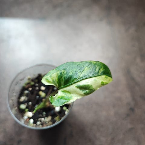 Pistokkaasta kasvanut pieni kasvi, jonka eka lehti näyttää upealta. Emokasvi tehnyt aina variegata lehtiä, joissa usein halfmoon- väritys. Postitus onnistuu huolellisesti ja lämpimästi vanuun yms. pakattuna. Heat pack 40h +2€, josta maksu erikseen kasvin lisäksi